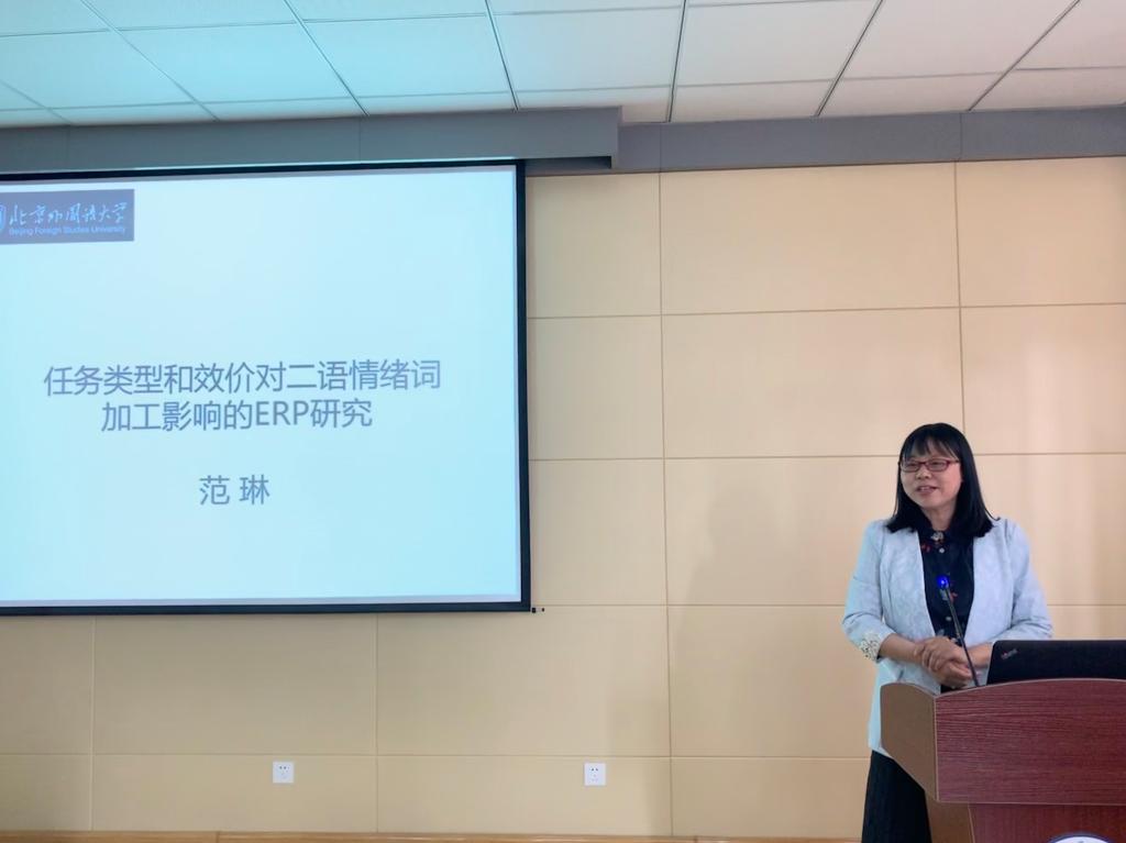 5月9日下午,北京外国语大学博士生导师范琳教授应邀来新葡的京官网作报告,报告题目为“任务类型和效价对汉英双语者情绪词的ERP研究”。报告由新葡的京集团8814院长尹洪山主持,副院长吕耀中等新葡的京官网部分师生到场聆听。
